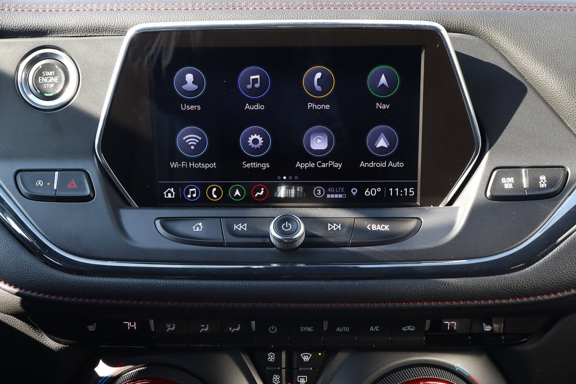 - Audio system, Chevrolet Infotainment 3 Plus system with connected Navigation, 8" diagonal HD color touchscreen, AM/FM stereo, Bluetooth® audio streaming for 2 active devices, Apple CarPlay and Android Auto capable, enhanced voice recognition, in-vehicle apps, cloud connected personalization for select infotainment and vehicle settings. Subscription required for enhanced and connected services after trial period.