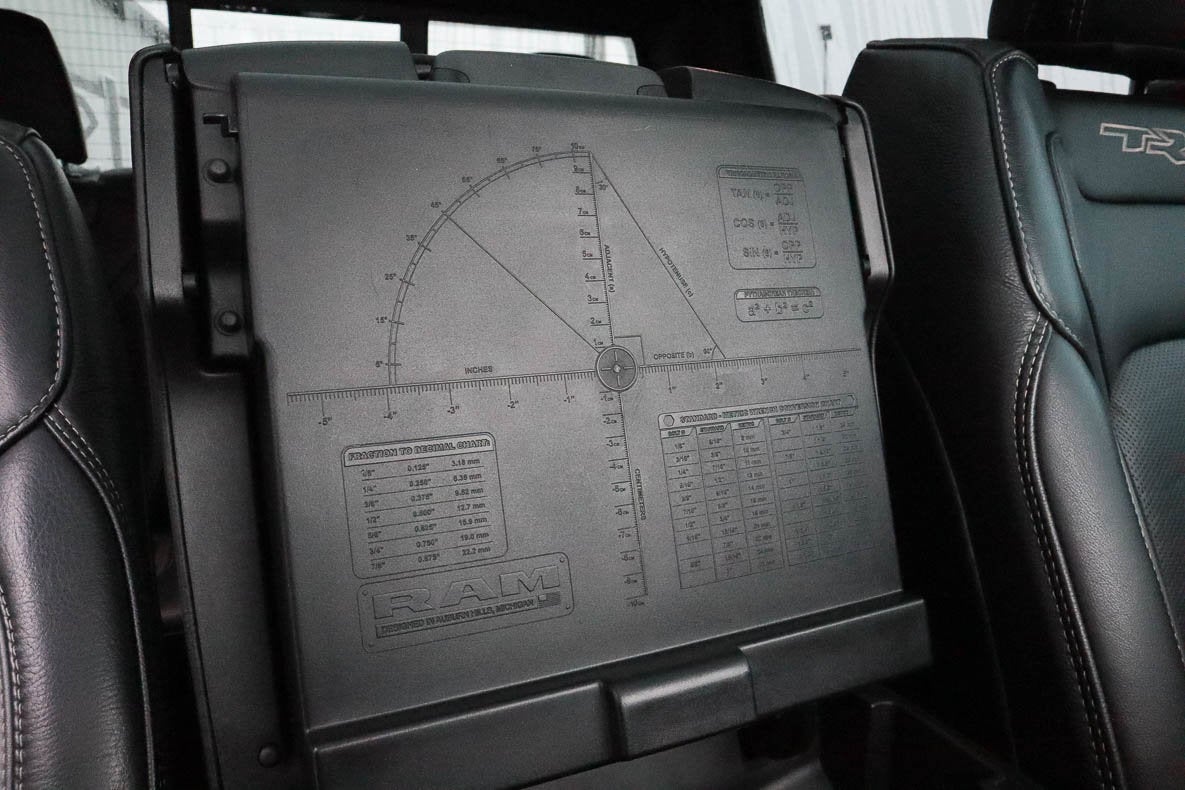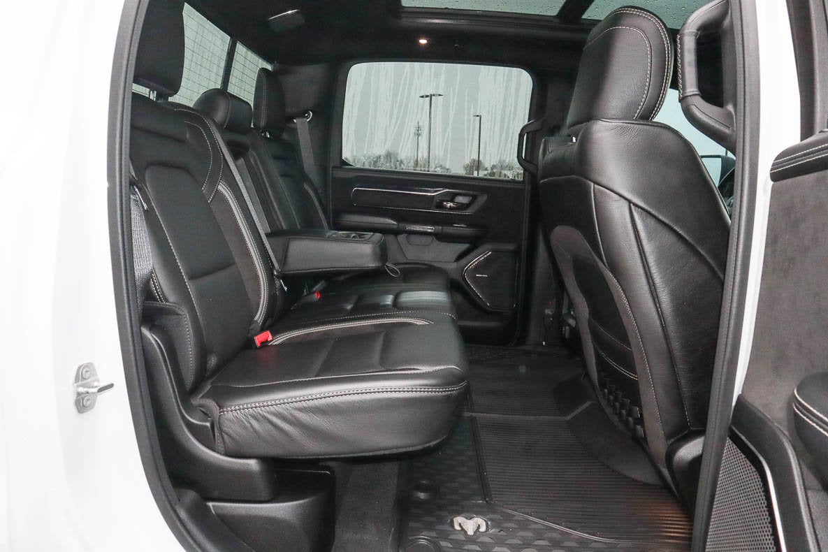 - TRX LEVEL 1 EQUIPMENT GROUP -inc: Full Length Premium Upgraded Floor Console Rear Window Defroster Rain Sensitive Windshield Wipers Power Adjustable Pedals Driver/Passenger Wrapped Assist Handles Pick-Up Box Lighting Body Color Door Handles MOPAR Bright Pedal Kit IP LED Ambient Light Pipe Premium Wrapped IP Bezel Rear Underseat Compartment Storage Universal Garage Door Opener Luxury Front Door Trim Panel Heated Steering Wheel Front Door Accent Lighting Power 8-Way Driver & Passenger Seats Rear Door Accent Lighting Sun Visors w/Illuminated Vanity Mirrors