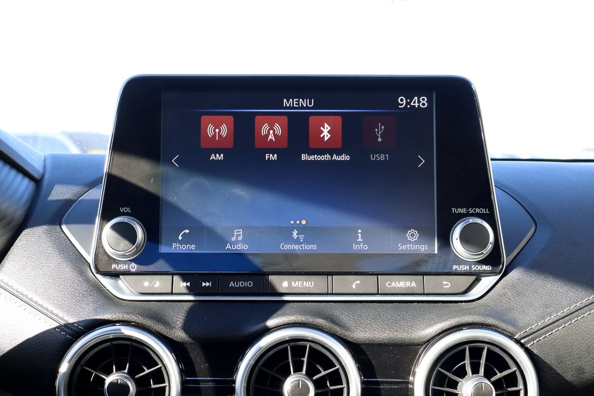 - Radio: AM/FM w/RDS/MP3/Aux-In -inc: 6 speakers plus 2 tweeters in A-pillar, 8" color display w/multi-touch control, streaming audio via Bluetooth®, Bluetooth® hands-free phone system, hands-free text messaging assistant, Siri Eyes Free, Google Assistant voice recognition w/Apple CarPlay and Android Auto, NissanConnect, (1) front USB connection port (type A), (1) additional front USB (type C), (1) charge-only USB (type A) center console and SiriusXM radio w/advanced audio features
